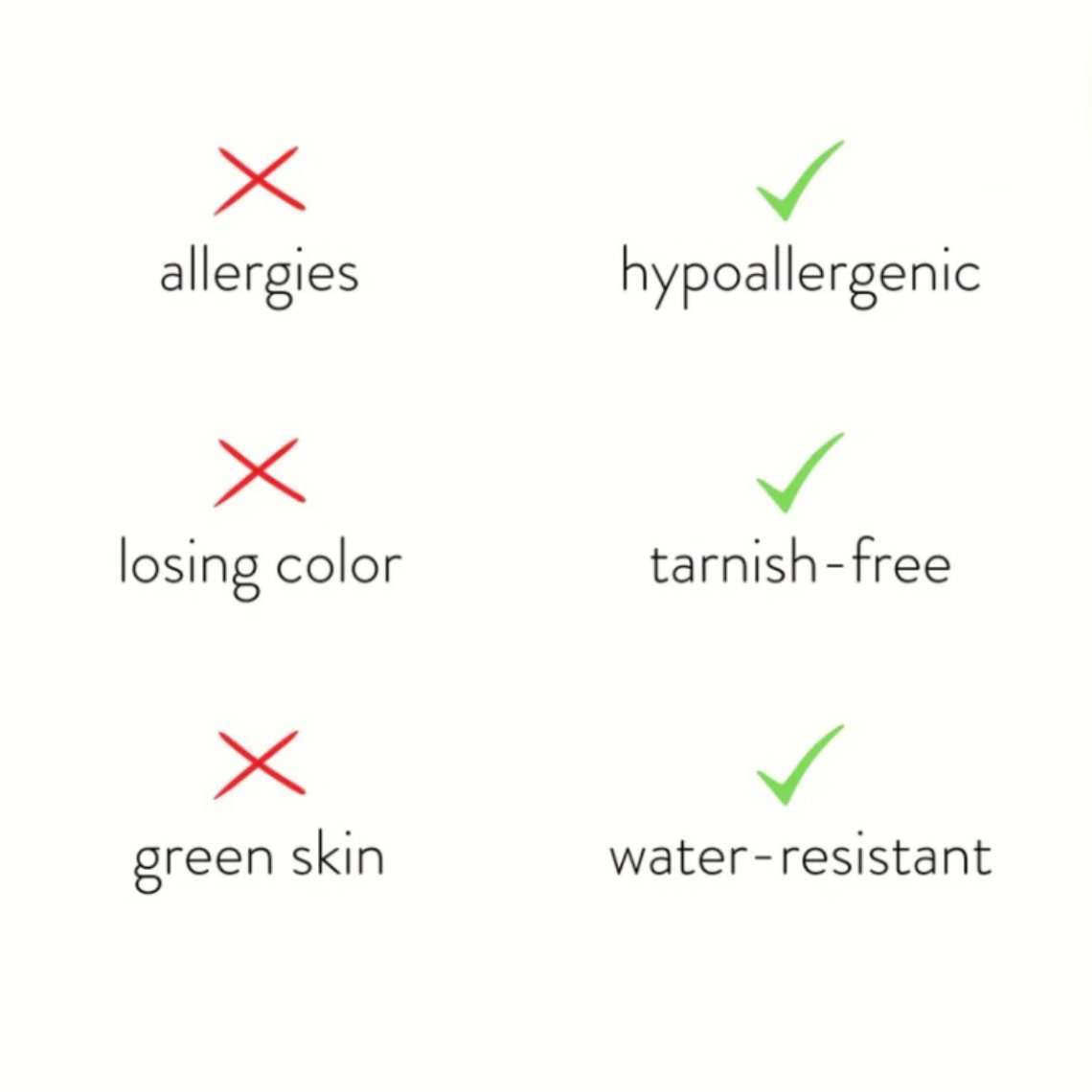 Vous n’aurez plus jamais à vous soucier des doigts qui verdissent, de la décoloration ou de l’oxydation.