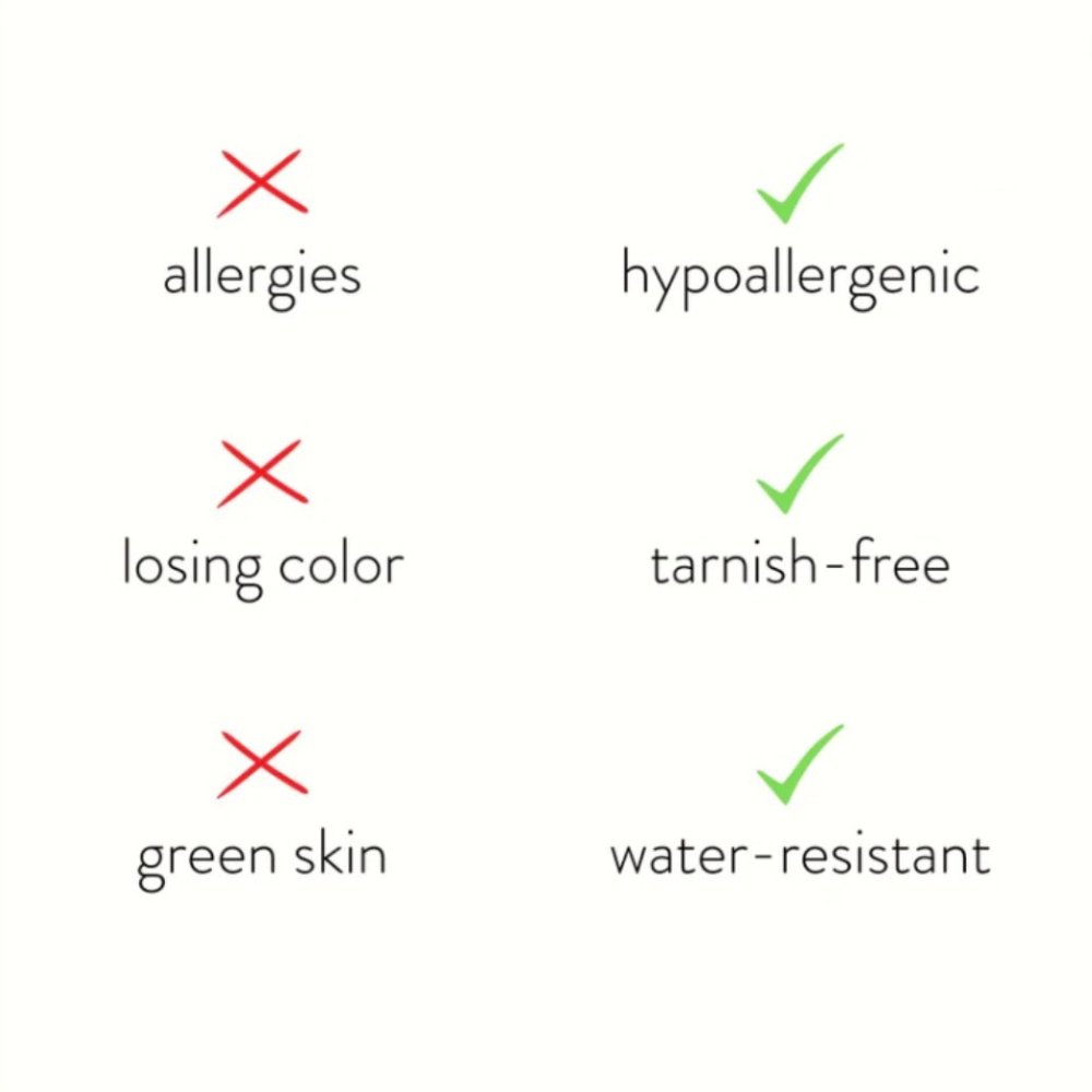 Fabriqué en acier inoxydable étanche, vous n'aurez plus jamais à vous soucier de la décoloration ou de l'oxydation de vos bijoux.