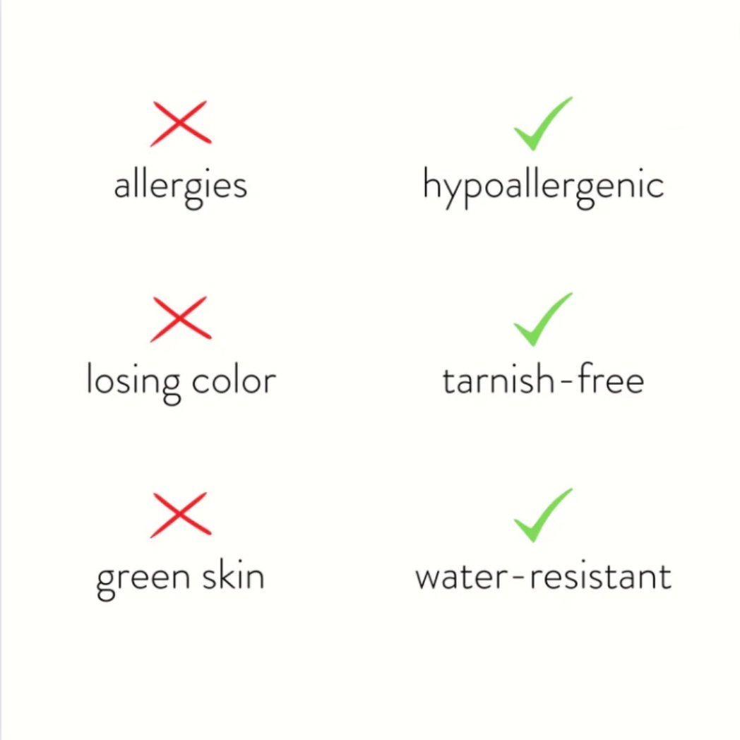 Fabriquée en acier inoxydable étanche, vous n'aurez plus jamais à vous soucier des doigts verts, de la décoloration ou du ternissement.